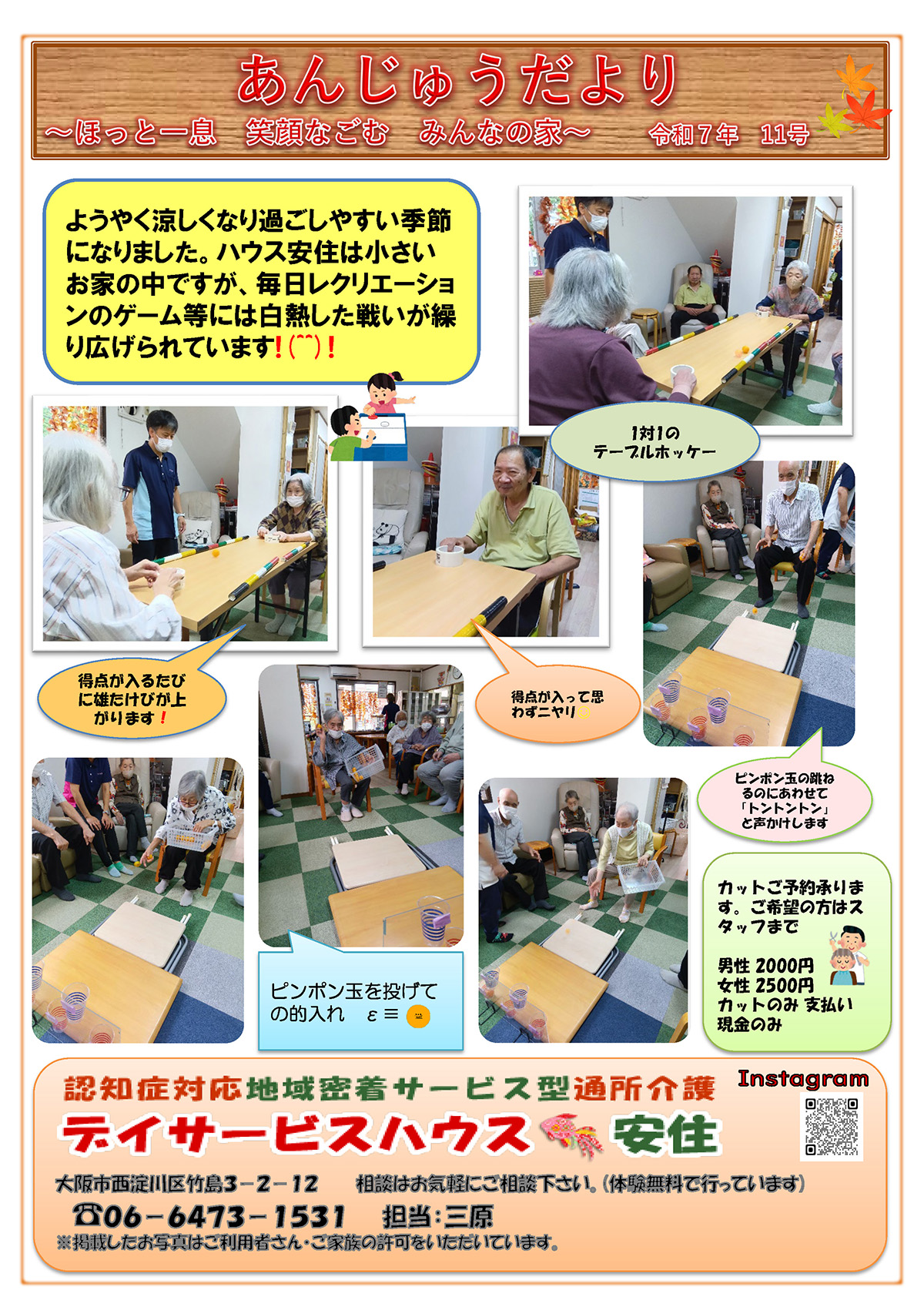 敬老の日・子供さんの訪問 / 手作りメダルの贈呈 / 六角テーブル卓球 /カットご予約