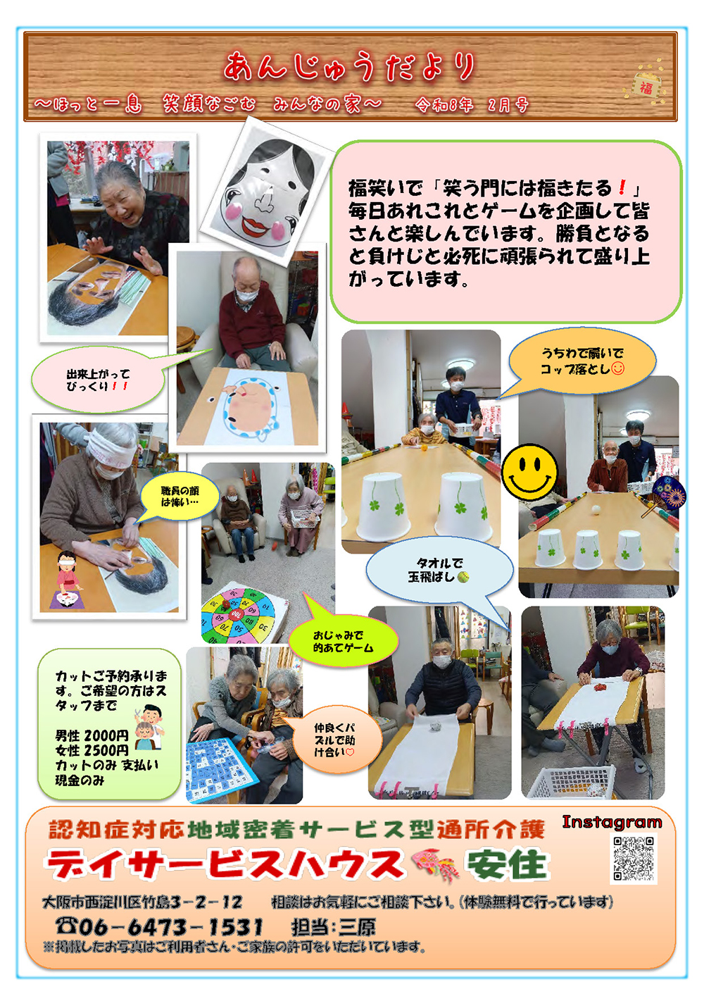 リハビリ体操 / 手作りパズル・言葉選びゲーム・歌唱・千羽鶴作成 /カットご予約