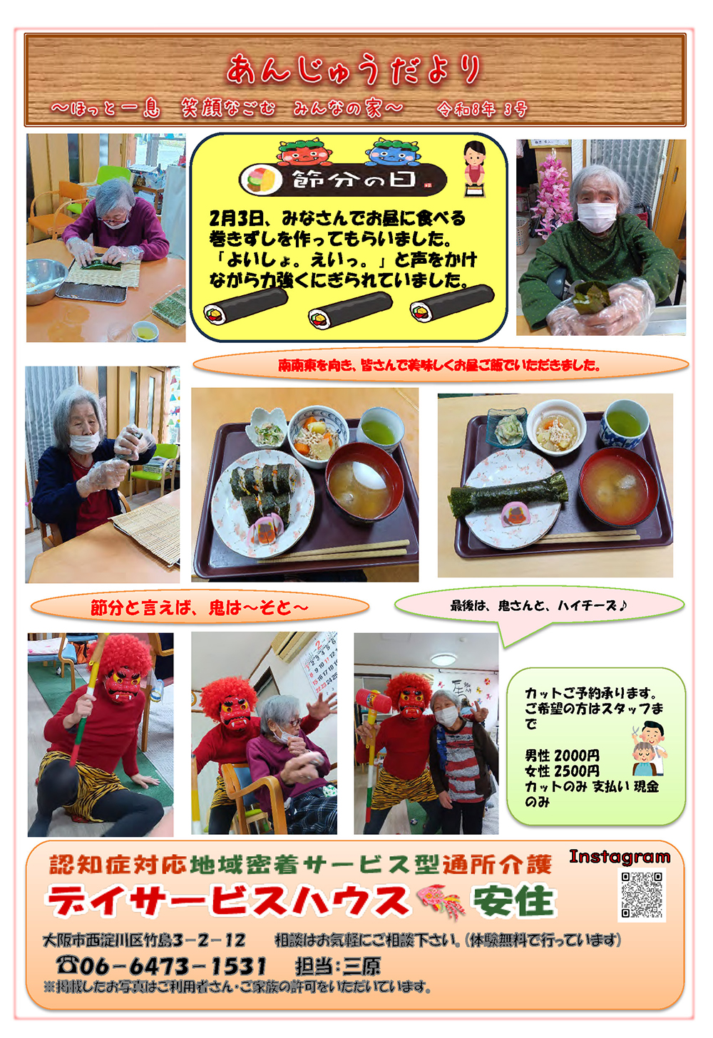 節分の日・巻きずし作り / 鬼さんの来訪・鬼は~そと~ /カットご予約