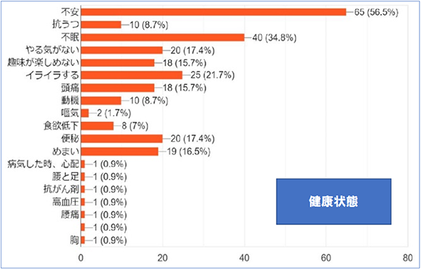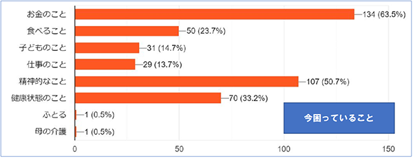 第2回、第3回と来場された方にはほぼ全員に生活アンケート(日本語版と英語版)を取りました。どの世代でもコロナ禍を契機にいっそう生活困窮が増していること、精神的苦痛や不安を感じていることがより鮮明になっています。(図表参照)