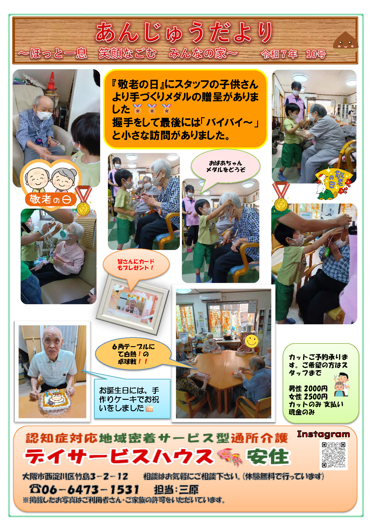 敬老の日・子供さんの訪問 / 手作りメダルの贈呈 / 六角テーブル卓球 /カットご予約
