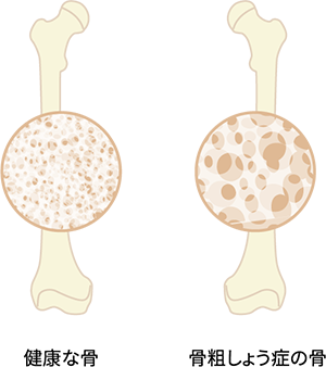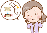 骨粗しょう症になると、骨折が起きるリスクが高まるので、早目に診断を受け、食事や運動療法に加え、場合によっては骨を強くするお薬などによる薬物治療を早く始めることが肝心です。