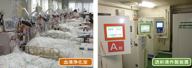 血液透析をはじめ、血漿交換、エンドトキシン吸着療法、白血球吸着療法(LCAP)などの血液浄化療法や、腹水ろ過濃縮再静注法も行っています。