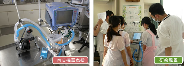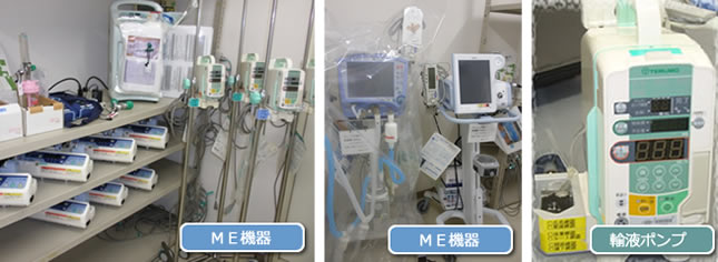 人工呼吸器や輸液ポンプ、シリンジポンプをはじめとした院内の主要な医療機器を一元管理し日常的な点検など医療機器に関連した幅広いサービスを行っています。