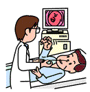 医師がモニターに映るおなかの中をすみずみまで観察します。
