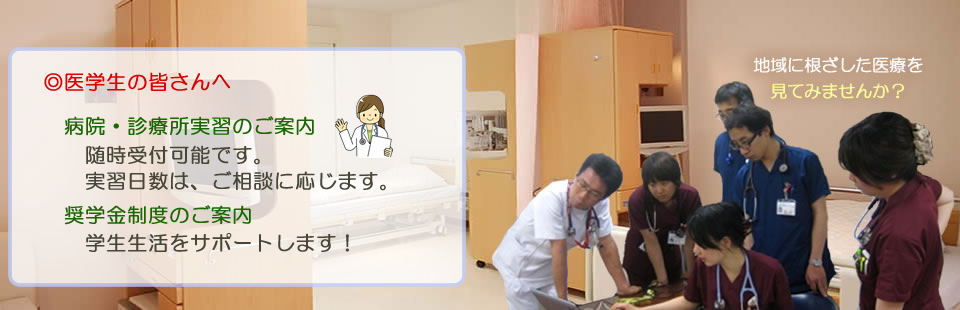 西淀病院では、臨床の現場を体験して頂くために、学年を問わず幅広く病院実習を受け入れています。