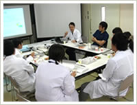 実際の患者さんに医療面接・身体診察を行い、指導医とディスカッションしながら鑑別疾患を一緒にあげ、カンファレンスを行います。